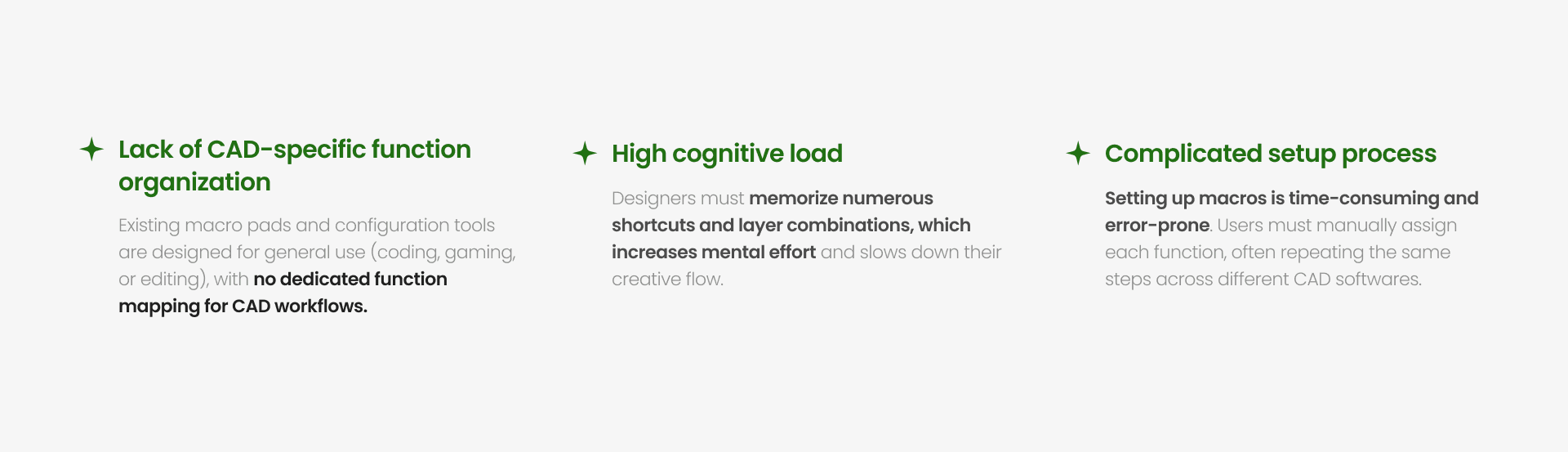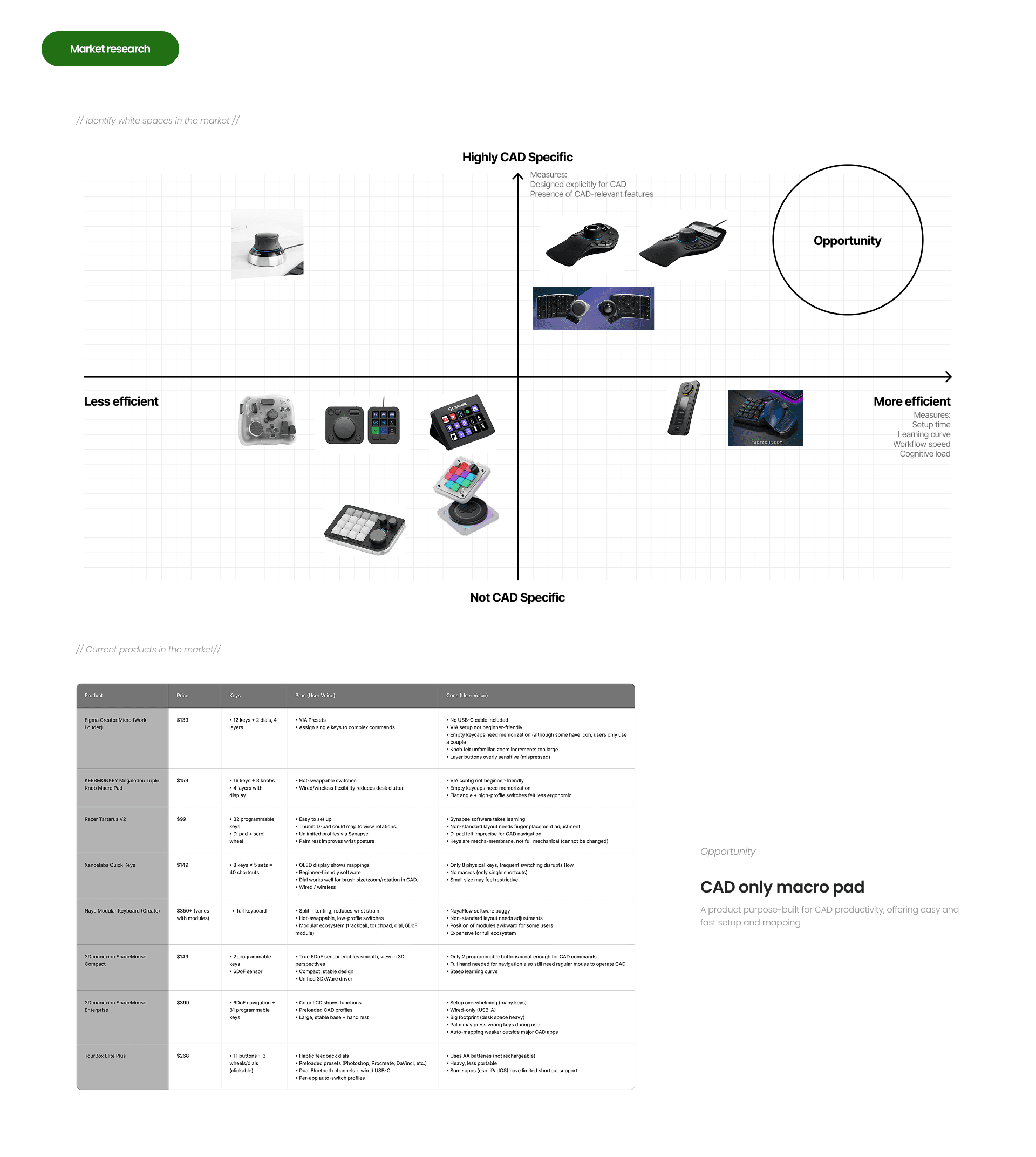 Through interviews, workflow observation, usability testing, and market analysis, I identified structural inefficiencies in existing CAD interaction systems.