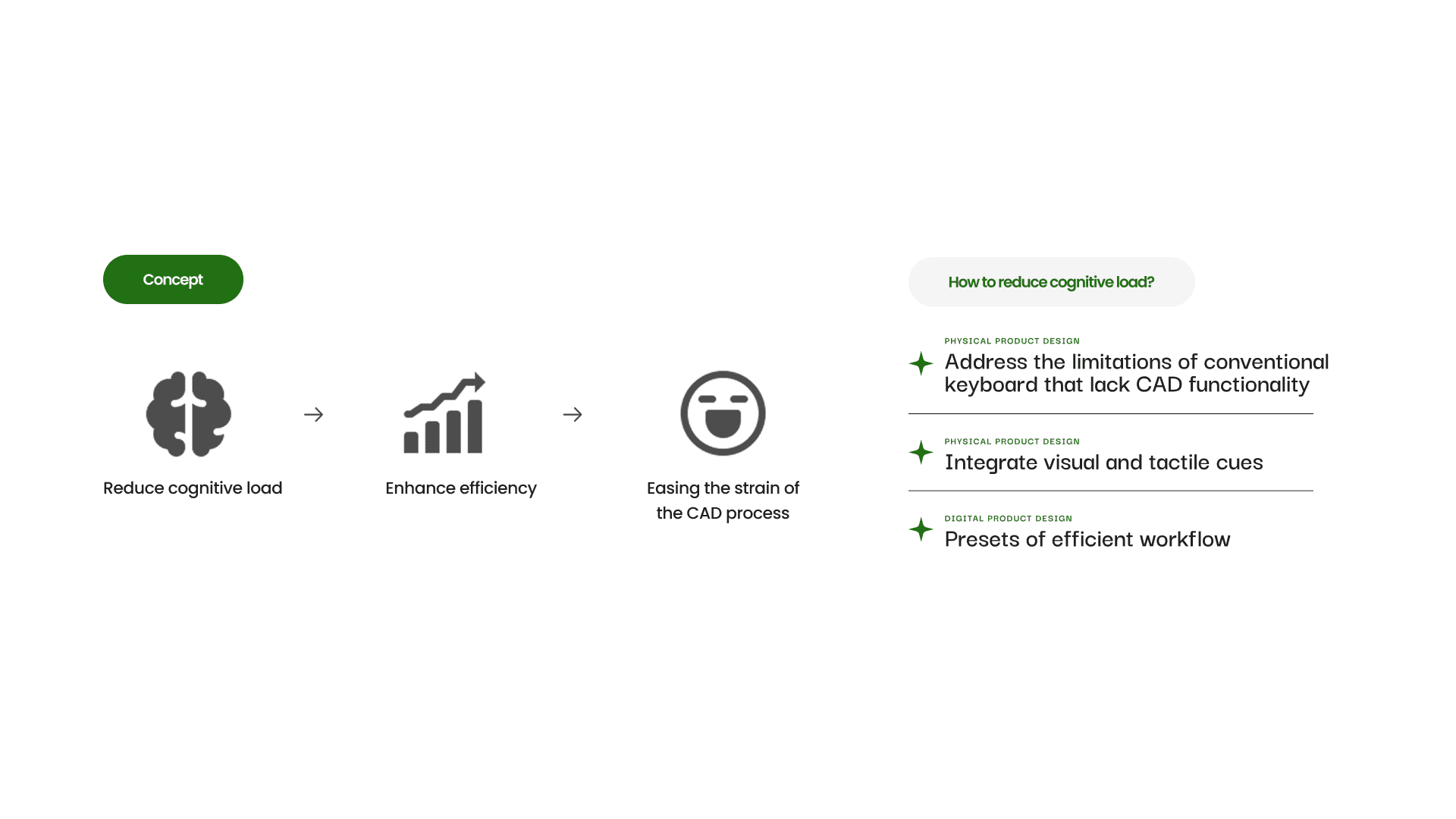 The project began with a 6-DOF control concept for CAD, but research revealed a steep learning curve and increased cognitive load. Recognizing that mental effort, not lack of control, was the core issue, I pivoted toward designing a system focused on workflow clarity and reduced complexity.